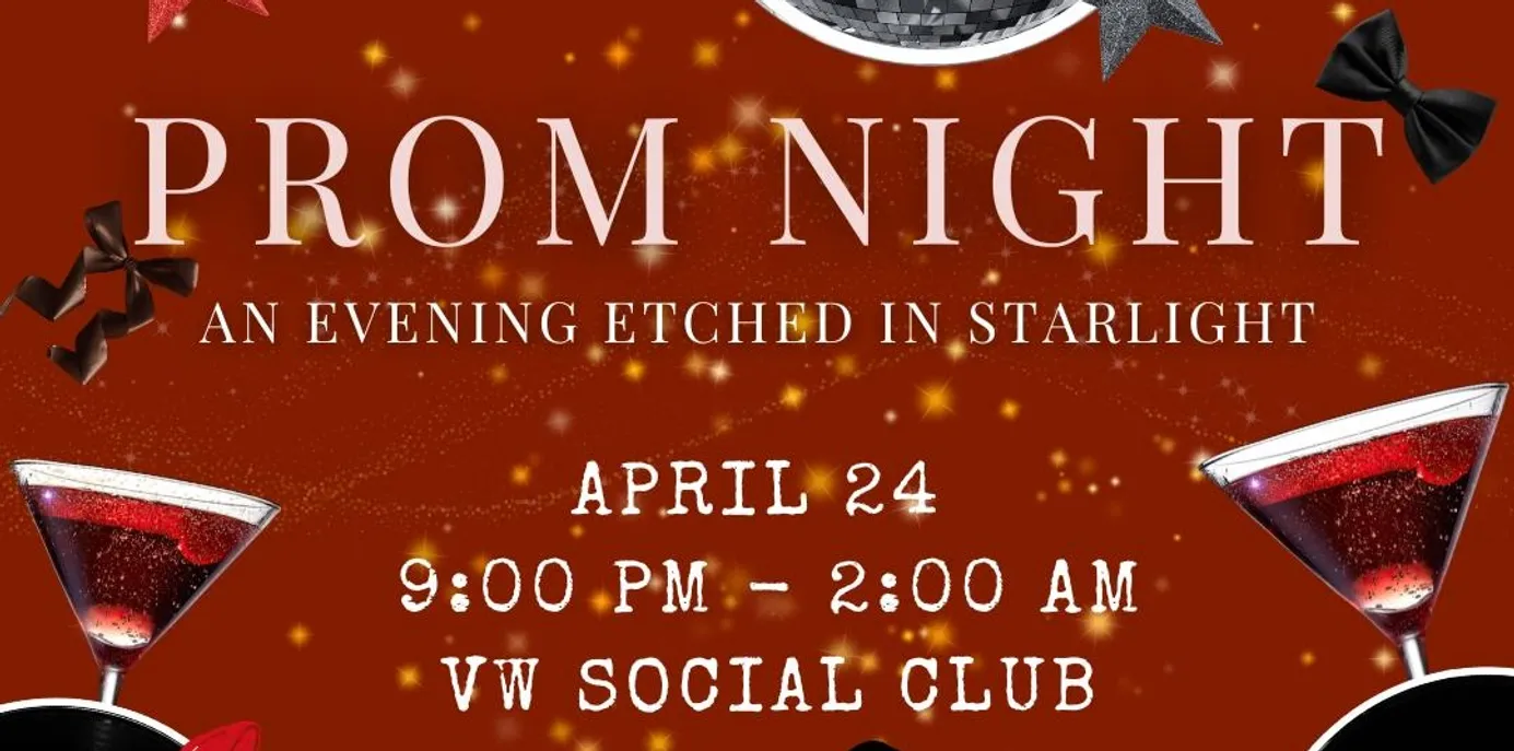 Dress in your finest prom attire — from elegant gowns to classic tuxedos — and enjoy an evening filled with music, dancing, and great vibes. This is your chance to unwind, connect, and create lasting memories.