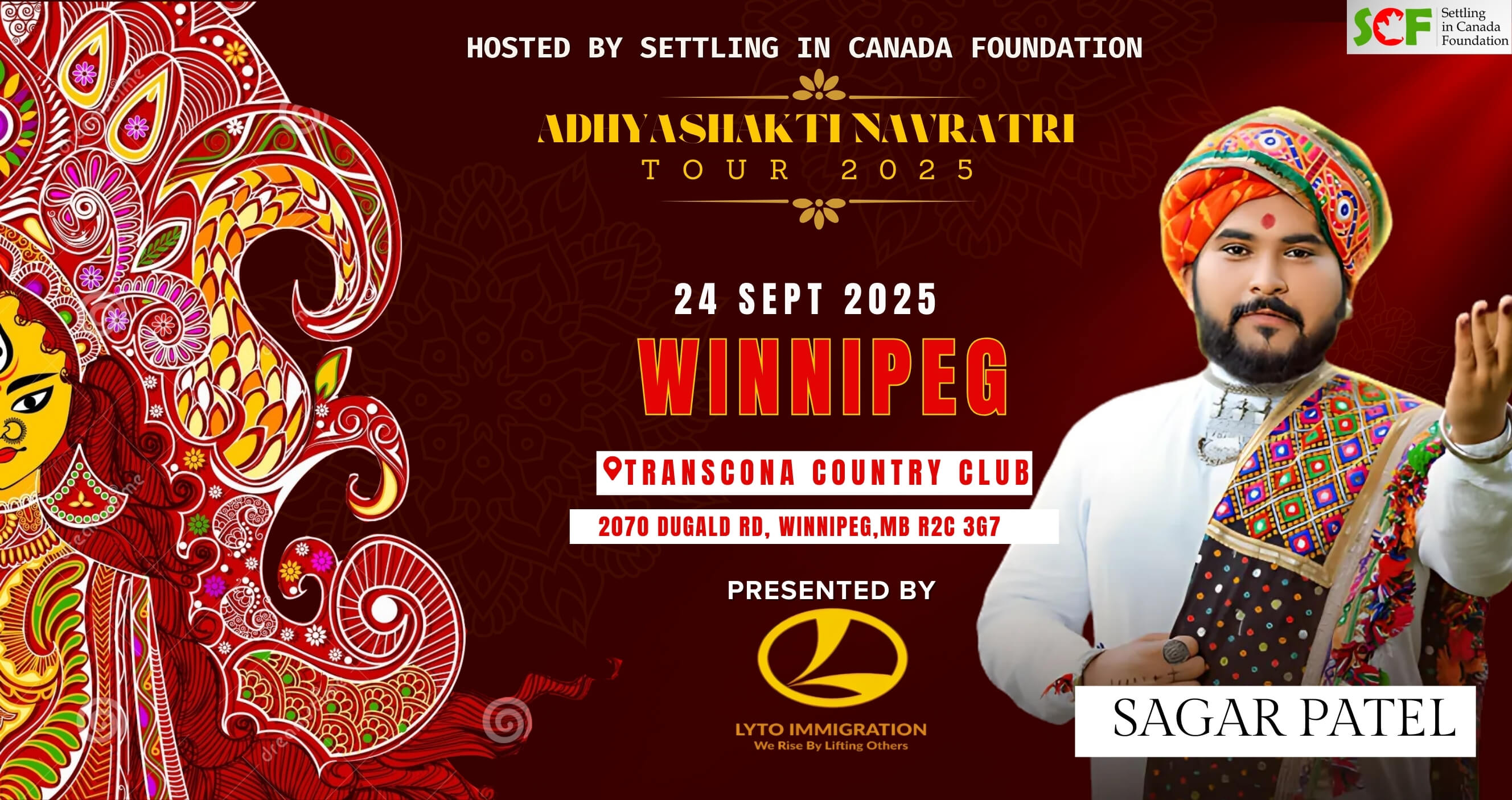 Celebrate Navratri like never before in Winnipeg at the Sagar Patel Adhyashakti Navratri Garba 2025 – Winnipeg! On Wednesday, September 24, 2025, starting at 6:00 PM, the Transcona Country Club will come alive with vibrant music, dance, and cultural unity.