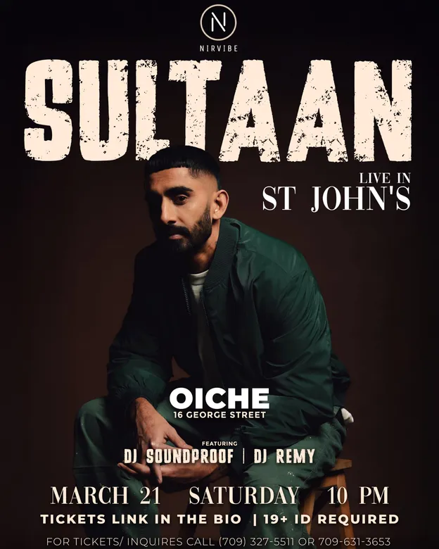Get ready for one of the biggest Punjabi live music experiences to arrive in Newfoundland. On Saturday, March 21, Punjabi hip-hop artist Sultaan performs live at Oiche Nightclub, bringing his high-energy stage presence and chart-topping hits to St. John’s.